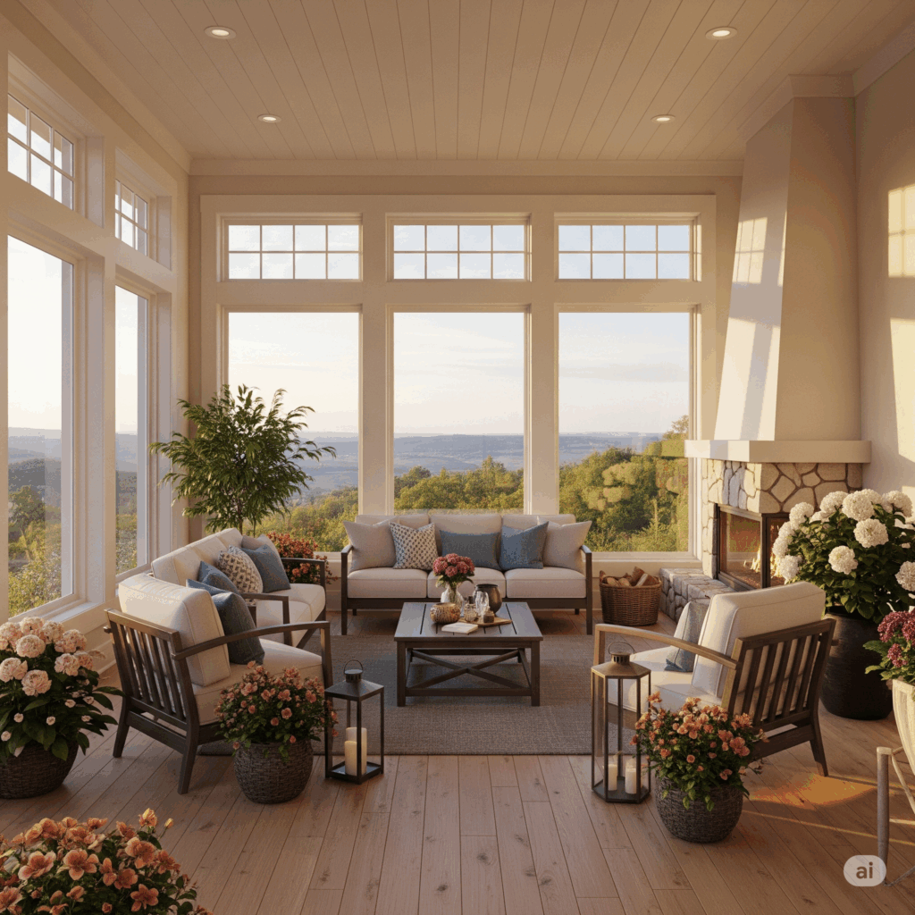 - Low-E Glass: While three-season rooms aren’t fully insulated, Low-E (low-emissivity) glass can significantly improve energy efficiency by reducing heat transfer, keeping the room cooler in summer and warmer on cooler days. It also helps protect furniture from UV fading.